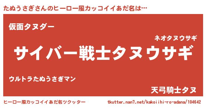 | 男性向けラノベタイトル風あだ名 | 『Re:たぬうさぎから始める異世界生活』 |