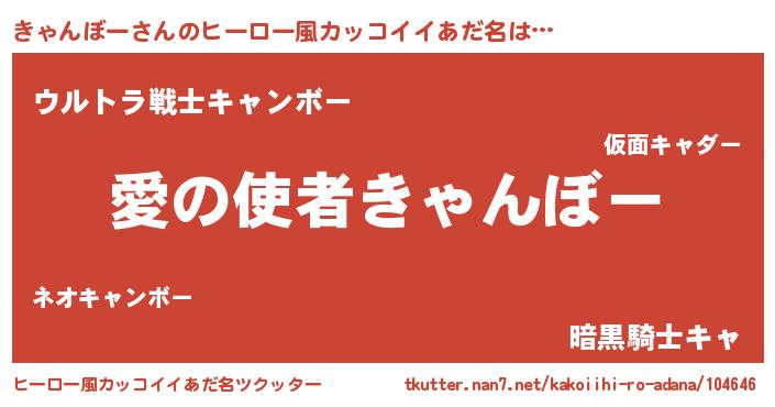 | 男性向けラノベタイトル風あだ名 | 『おまえをオタクにしてやるから、俺をきゃんぼーにしてくれ! 』 |