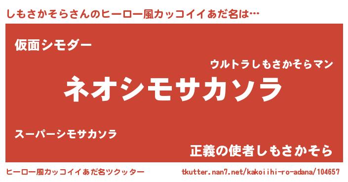 | 男性向けラノベタイトル風あだ名 | 『しもさかそらという概念が存在しない退屈な世界 』 |