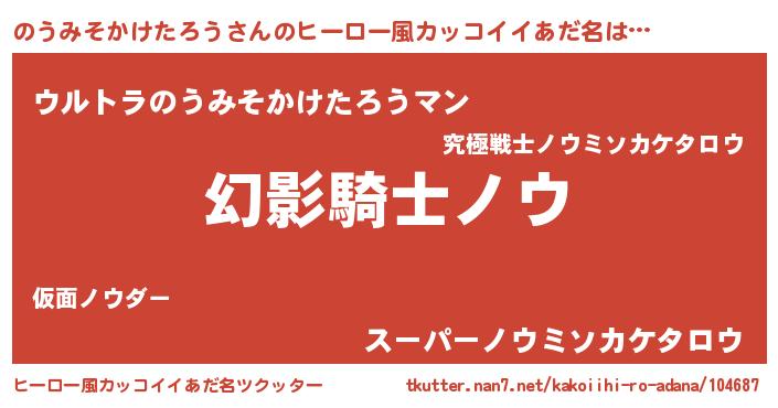 | 男性向けラノベタイトル風あだ名 | 『のうみそかけたろうの嫁は女の子じゃないと思った?』 |