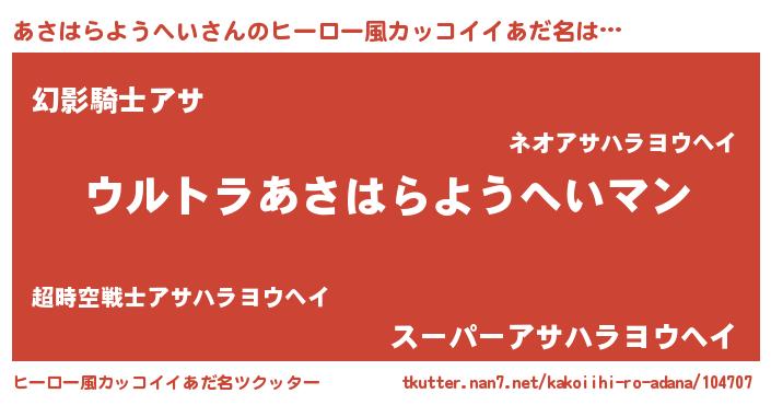 | 意味不明あだ名 | 『あさはらようへいフォーエバー』 |