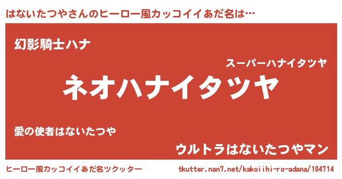 | 女子向けラノベタイトル風あだ名 | 『はないたつやの玉の輿計画!』 |