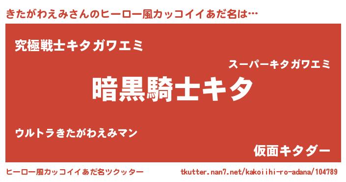 | 胡散臭い通販商品みたいなあだ名 | 『信頼と実績のサプリメント…その名も「きたがわえみ」』 |