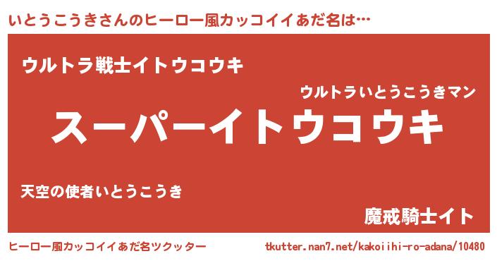 | 胡散臭い通販商品みたいなあだ名 | 『億万長者になれるブレスレット…その名も「いとうこうき」』 |