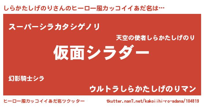 | 意味不明あだ名 | 『住所不定無職しらかたしげのり(68歳)』 |