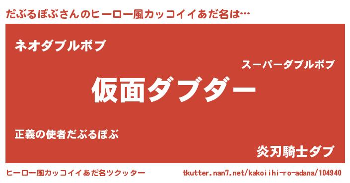 | 男性向けラノベタイトル風あだ名 | 『はたらくだぶるぼぶさま!』 |