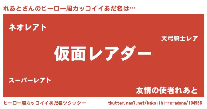 | 男性向けラノベタイトル風あだ名 | 『この素晴らしい世界にれあとを!』 |