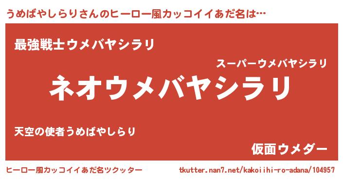 | 意味不明あだ名 | 『永久保存うめばやしらり』 |