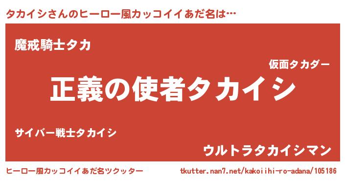 | ポケモン風あだ名 | 『タックウザ』『ヒタカイシ』 |