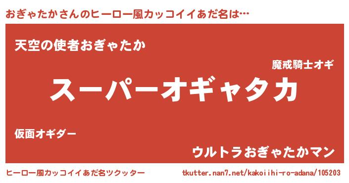| 胡散臭い通販商品みたいなあだ名 | 『モテモテ間違いなしブレスレット…その名も「おぎゃたか」』 |