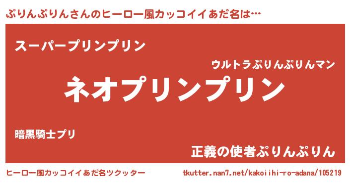 | 男性向けラノベタイトル風あだ名 | 『ぷりんぷりんという概念が存在しない退屈な世界 』 |