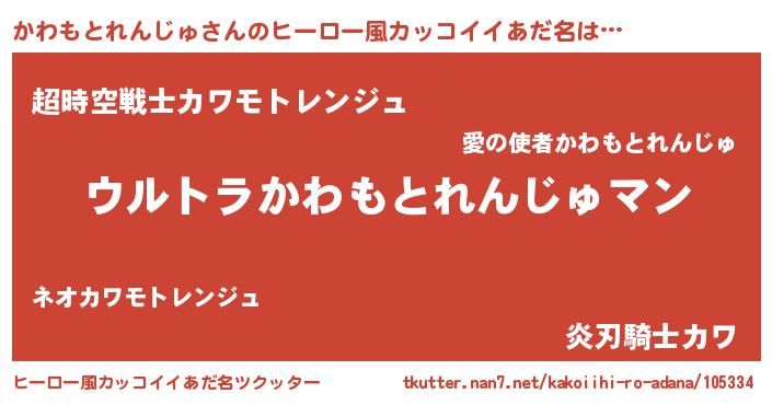 | 男性向けラノベタイトル風あだ名 | 『やはりかわもとれんじゅの青春ラブコメはまちがっている 』 |