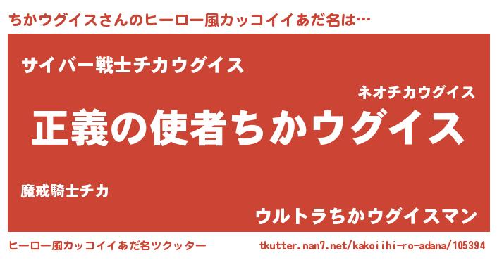 | 男性向けラノベタイトル風あだ名 | 『おまえをオタクにしてやるから、俺をちかウグイスにしてくれ! 』 |