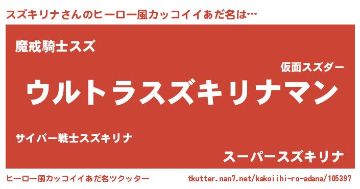 | ポケモン風あだ名 | 『スズキダネ』『ヒスズキリナ』 |