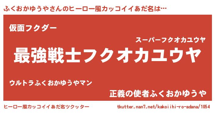 | 女子向けラノベタイトル風あだ名 | 『ふくおかゆうやの玉の輿計画!』 |