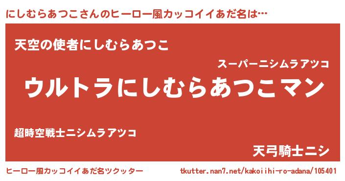 | ファンタジー風あだ名 | 『エターナルニシムラアツコー』 |