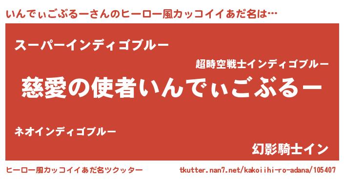 | 男性向けラノベタイトル風あだ名 | 『ノーゲーム・ノーインディゴブルー』 |