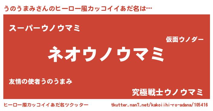 | 男性向けラノベタイトル風あだ名 | 『うのうまみに滅ぼされるだけの簡単なお仕事です』 |