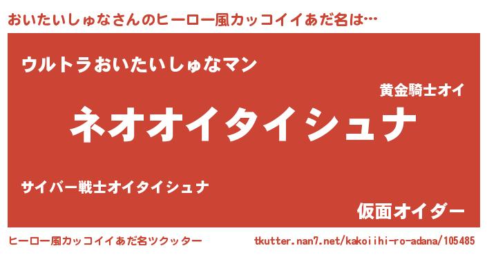 | 男性向けラノベタイトル風あだ名 | 『おいたいしゅなという概念が存在しない退屈な世界 』 |