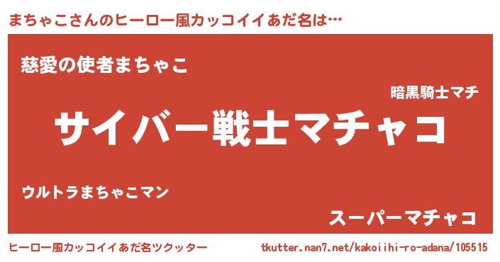 | 男性向けラノベタイトル風あだ名 | 『魔法科高校のまちゃこ』 |