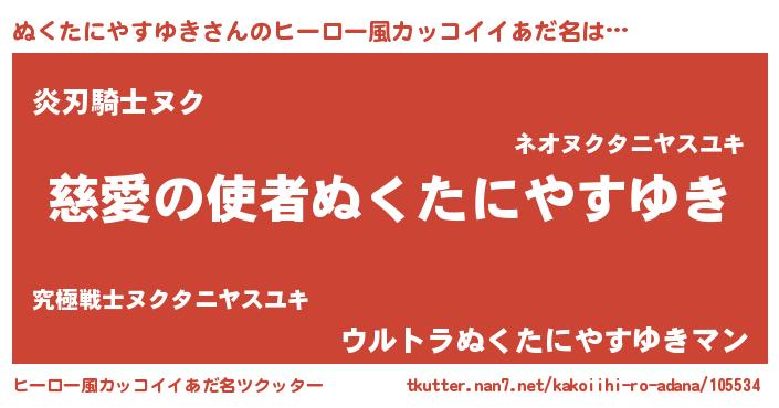 | ポケモン風あだ名 | 『ヌックウザ』『ヒヌクタニヤスユキ』 |
