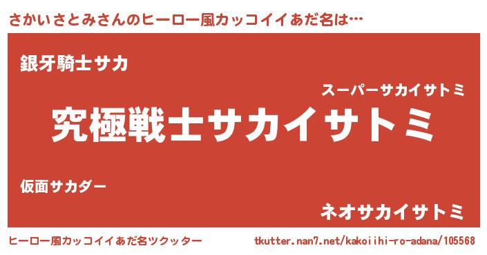 | 男性向けラノベタイトル風あだ名 | 『Re:さかいさとみから始める異世界生活』 |