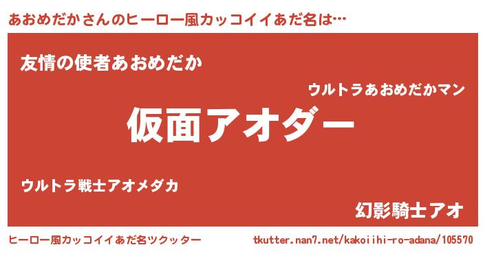 | 男性向けラノベタイトル風あだ名 | 『この素晴らしい世界にあおめだかを!』 |