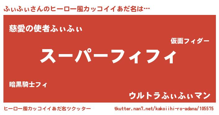 | 男性向けラノベタイトル風あだ名 | 『ふぃふぃの憂鬱』 |