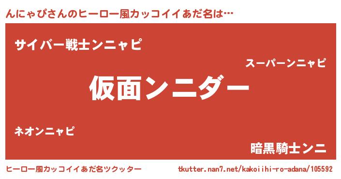 | 男性向けラノベタイトル風あだ名 | 『この素晴らしい世界にんにゃぴを!』 |