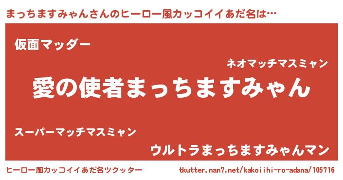 | 女子向けラノベタイトル風あだ名 | 『まっちますみゃん恋絵巻』 |