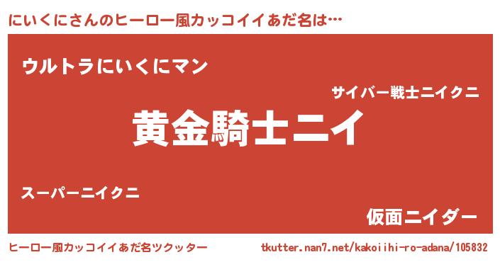 | 胡散臭い通販商品みたいなあだ名 | 『信頼と実績のサプリメント…その名も「にいくに」』 |