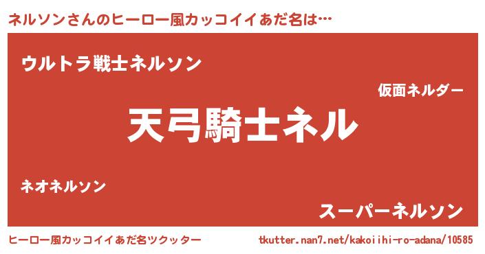 | 男性向けラノベタイトル風あだ名 | 『ネルソンの嫁は女の子じゃないと思った?』 |