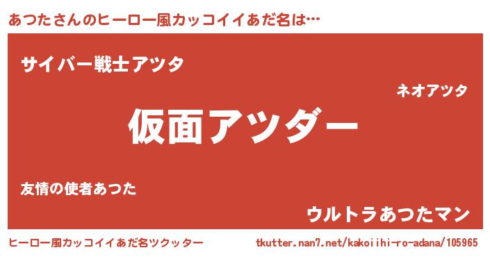 | 男性向けラノベタイトル風あだ名 | 『魔弾の王とあつた』 |
