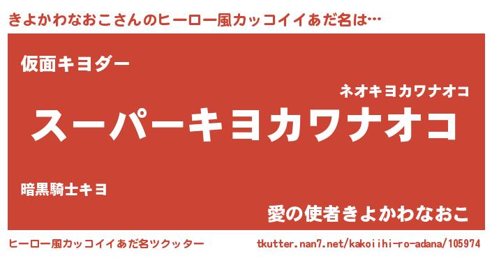| ヘコむあだ名 | 『きよもー』『きよかわなおこ(苦笑)』 |