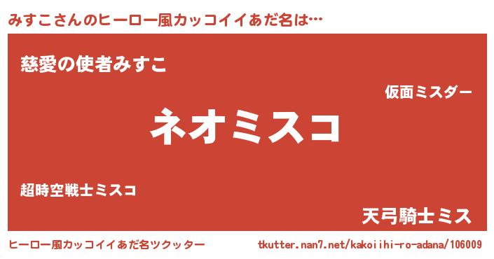| 男性向けラノベタイトル風あだ名 | 『みすこという概念が存在しない退屈な世界 』 |