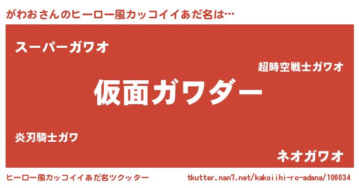 | 男性向けラノベタイトル風あだ名 | 『この素晴らしい世界にがわおを!』 |