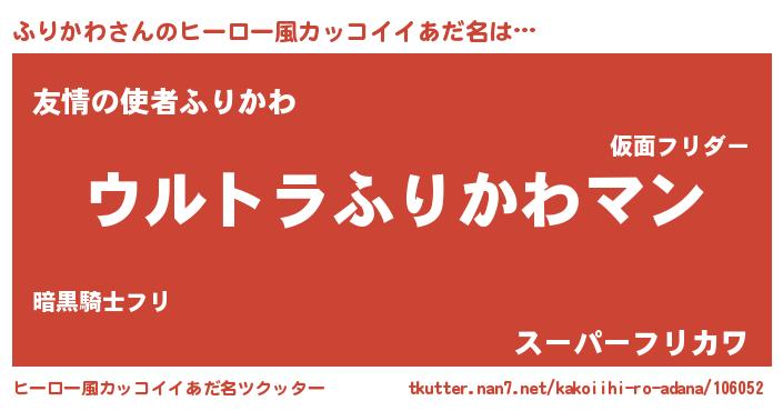 | 男性向けラノベタイトル風あだ名 | 『ふりかわに滅ぼされるだけの簡単なお仕事です』 |