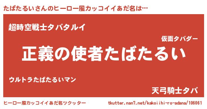 | 男性向けラノベタイトル風あだ名 | 『タバタルイスレイヤー』 |