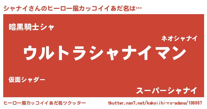 | 男性向けラノベタイトル風あだ名 | 『シャナイスレイヤー』 |