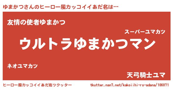 | ポケモン風あだ名 | 『ユマカダネ』『ユックウザ』 |