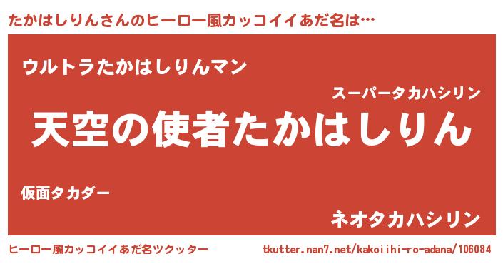 | 男性向けラノベタイトル風あだ名 | 『たかはしりん~年齢イコール彼女いない歴の魔法使い~』 |