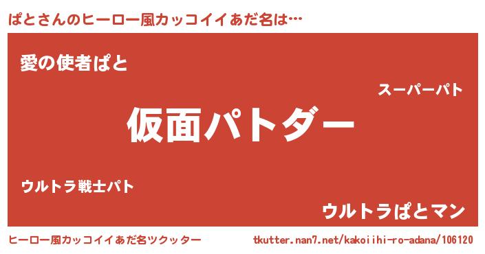 | 男性向けラノベタイトル風あだ名 | 『魔弾の王とぱと』『ぱとの憂鬱』 |