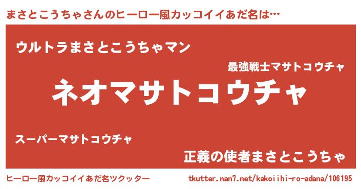 | 女子向けラノベタイトル風あだ名 | 『異世界で失敗しない100のまさとこうちゃ』 |