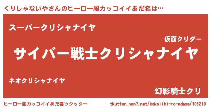 | 女子向けラノベタイトル風あだ名 | 『くりしゃないやアンティーク』 |