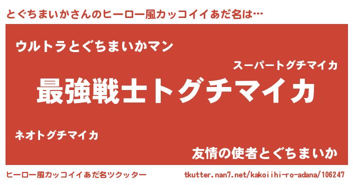 | 胡散臭い通販商品みたいなあだ名 | 『芸能人もオススメする高麗人参…その名も「とぐちまいか」』 |