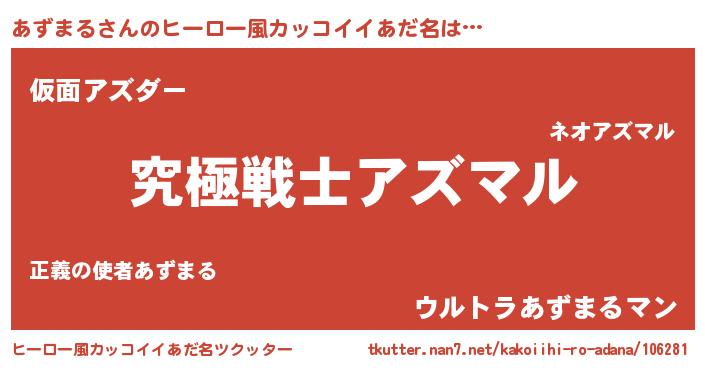 | 欧米人風あだ名 | 『あずまる・ステッグマイヤー』 |