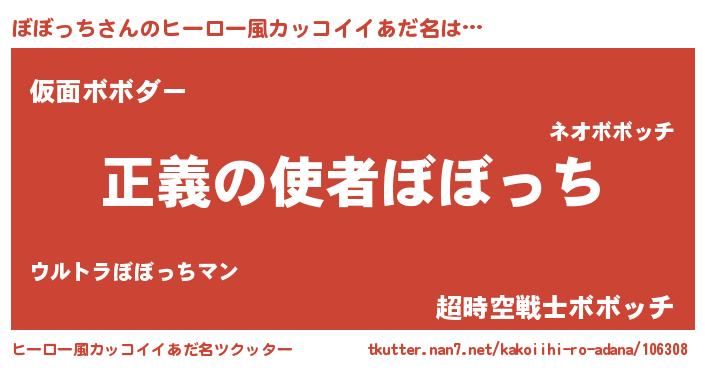 | ヘコむあだ名 | 『ぼぼっち(苦笑)』『酢こんぶ』 |