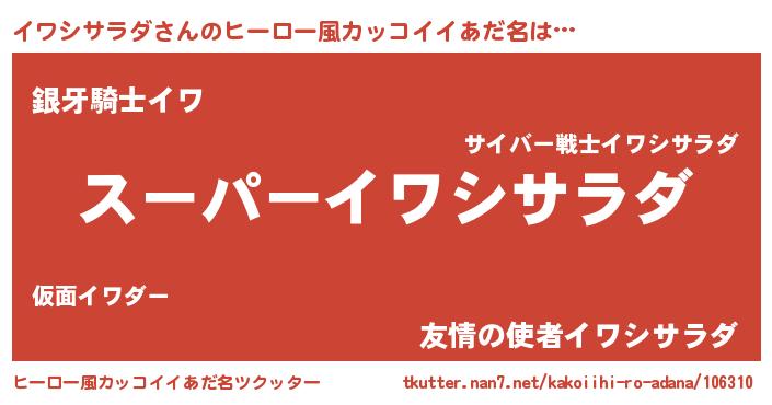 | 男性向けラノベタイトル風あだ名 | 『うちのイワシサラダが世界を掌握している!』 |