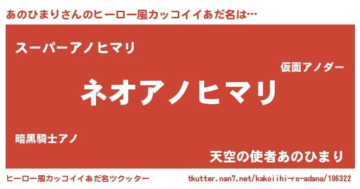 | ヘコむあだ名 | 『あのひまり(小並感)』『あのふぇ~』 |