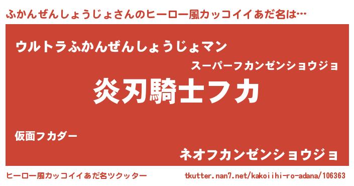 | 男性向けラノベタイトル風あだ名 | 『ふかんぜんしょうじょの嫁は女の子じゃないと思った?』 |